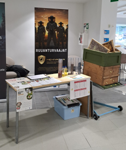 Esittelimme tapahtumassa MehiVarman etenemistä, jaoimme hankemateriaalia ständillä ja kuulimme hankkeessa valmistuvasta opinnäytetyöstä, joka käsittelee pölytyspalveluun soveltuvia mehiläispesiä.