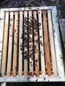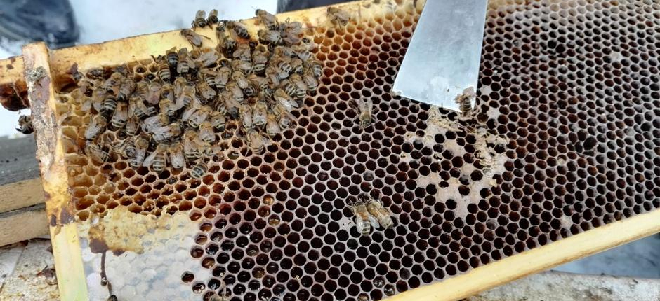 a) ruokaa oli hyvin jäljellä, mutta mehiläiset olivat pää edellä kennoissa