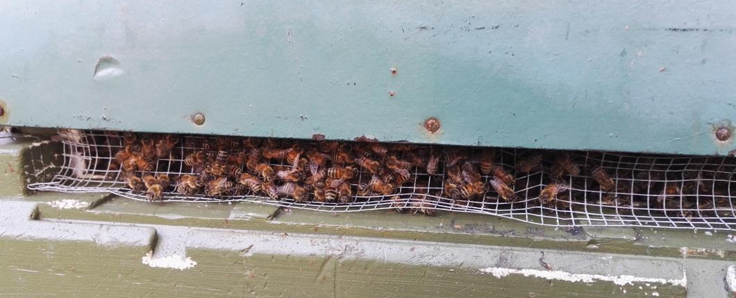a) Mehiläiset olivat ulostaneet runsaasti sekä pesän sisään että ulkopuolelle
