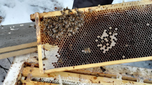 ** Mahdollinen syy: varroa, emon puuttuminen tai vaihtuminen myöhään syksyllä eikä emo ollut ehtinyt pariutua